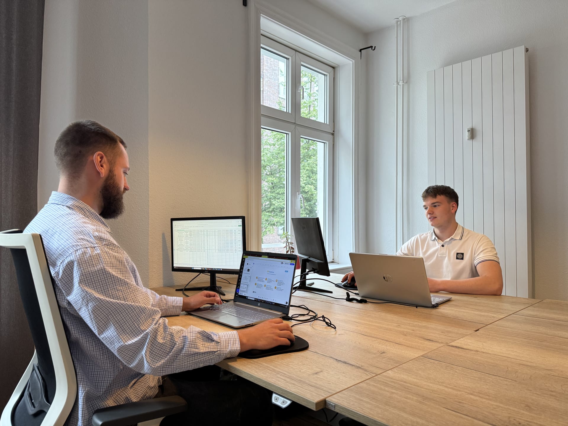 Es erwartet dich eine moderne Arbeitsstätte mit einer hochwertigen Möblierung mit höhenverstellbaren Schreibtischen und tageslichtdurchfluteten Büroräumen im charmanten Hamburger Altbaustil mit klassischen Pitch-Pine.